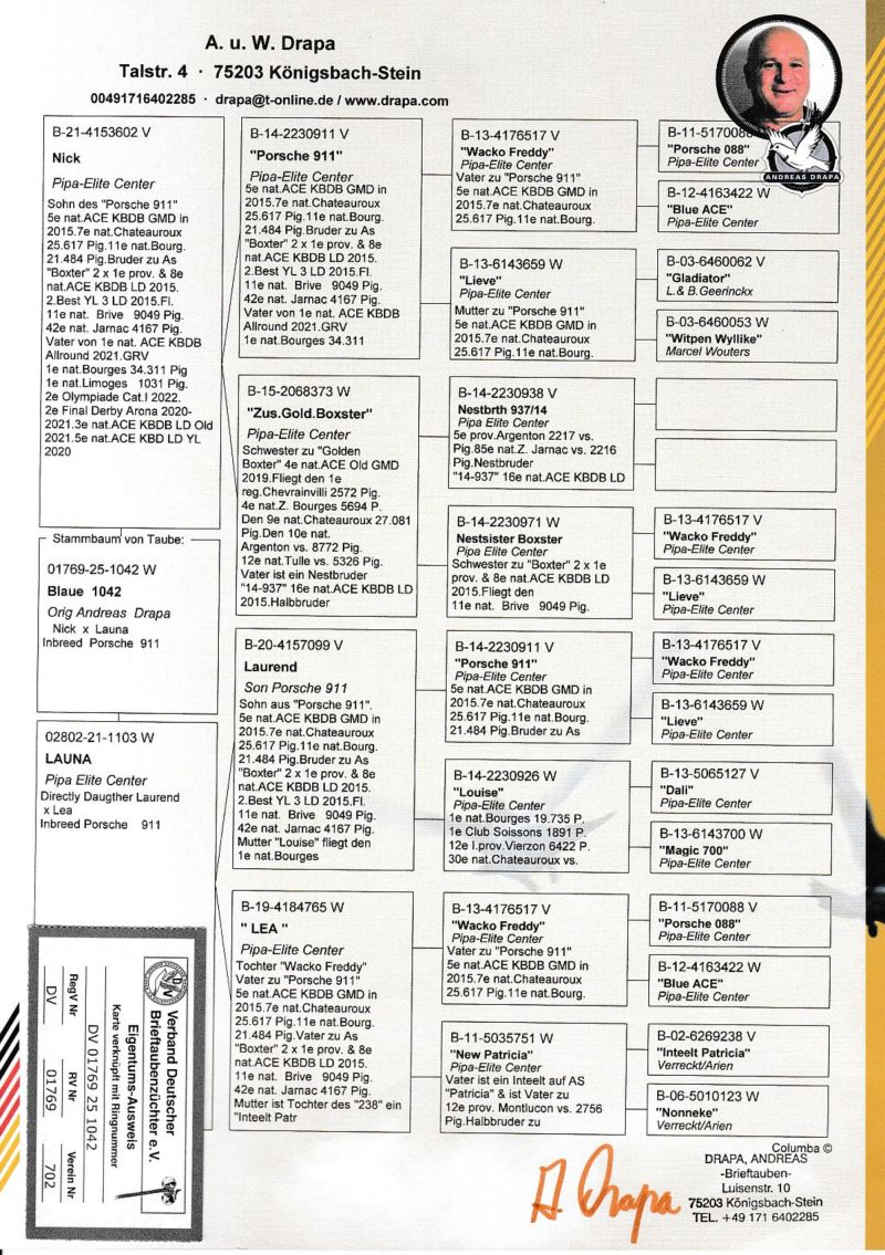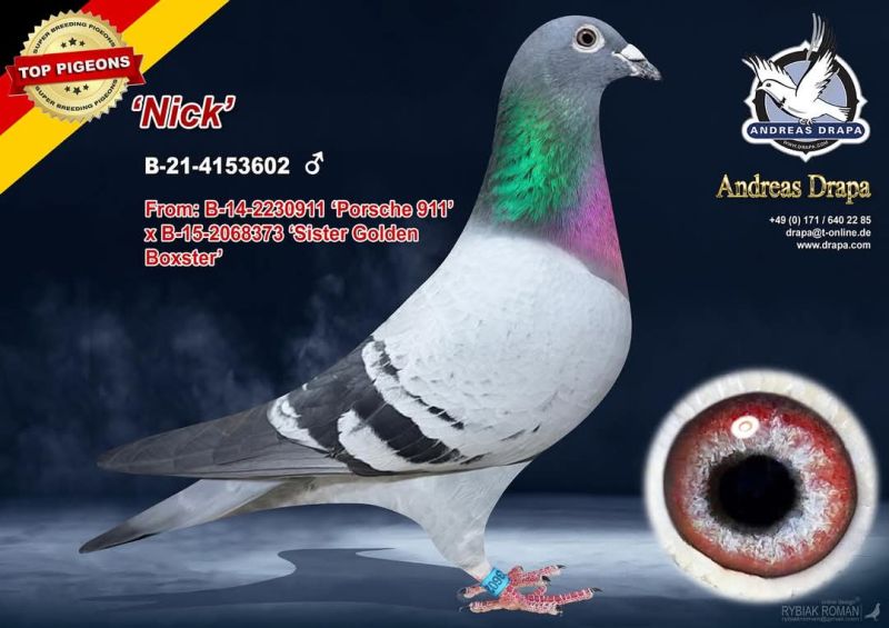 UWAGA PODBICIE NA TEJ AUKCJI WYNOSI 50 ZŁ Oryginalny gołąb z hodowli Andreasa Drapy. Szczegóły pochodzenia w rodowodzie. Oferowany gołąb to prawodopodobnie SAMICA. Gołąb jest własnością Andreasa Drapy i znajduje się już w Polsce u kolegi Roberta Grochowskiego. Gołębia można obejrzeć w Urbanowicach woj. opolskie, po wcześniejszym kontakcie telefonicznym. Sprzedający może zorganizować transport gołębia. Koszt przesyłki do najbliższego większego miasta obok miejscowości kupującego to około 70-100zł. Więcej informacji pod numerem 600133330. Gołębie są zaszczepione w grudniu SALMOVIREM. SĄ TO OSTATNIE GOŁĘBIE Z ROCZNIKA 2025