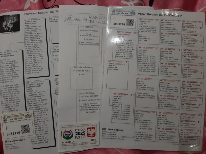 Ociec pełny brat NORY- 7 roczniak Belgii, matka córka DOUBLE KAASBOER- najlepszego roczniaka Belgii w lotach dalekich. DOUBLE KAASBOER sprzedany na PIPA za 144 tys. euro. Szczegóły pochodzenia w rodowodzie i pod nr tel. 696 241 555