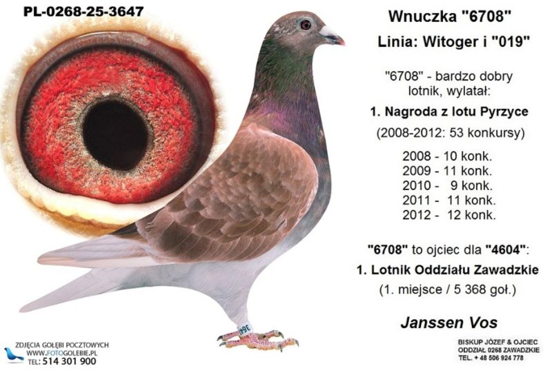 1. Nagroda z lotu Pyrzyce (2008-2012: 53 konkursy); "6708" to ojciec dla "4604":