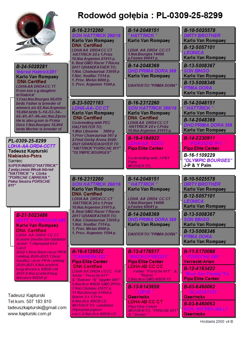 Oryginalny gołąb z hodowli Tadeusza Kapturskiego. Szczegóły pochodzenia w rodowodzie. Więcej informacji pod nr tel.: 507183810 *transport kurier 165 zł