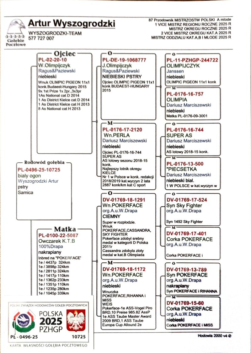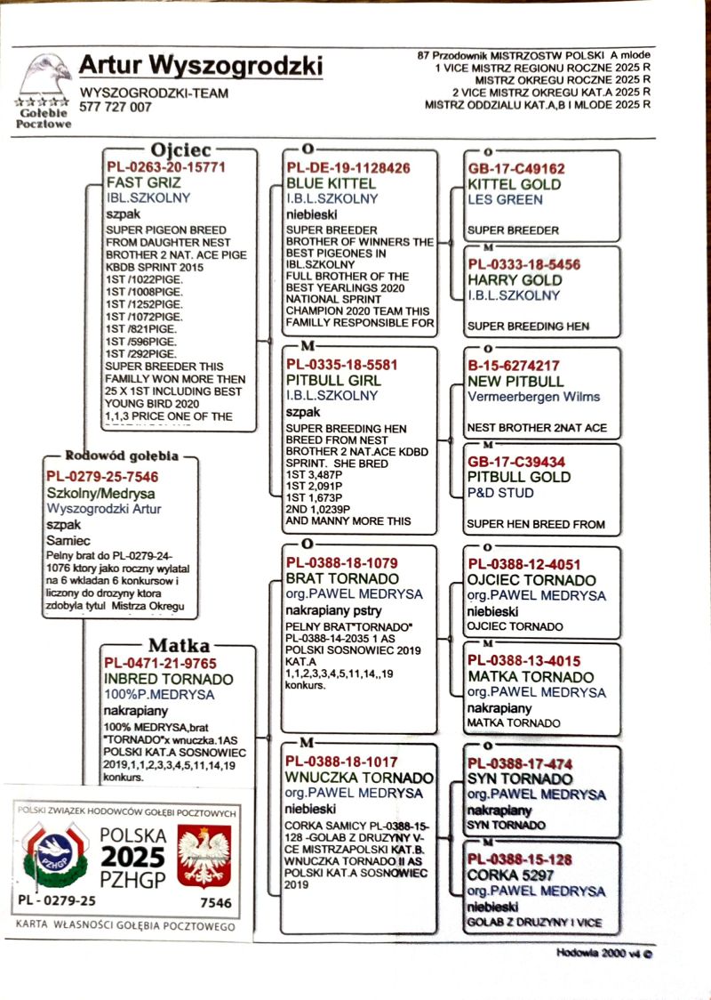 ORYGINALNY GOŁĄB Z HODOWLI WYSZOGRODZKI TEAM *** PL-0279-25-7546 IBL.SZKOLNY LINIA BLUE KITTEL,HARRY GOLD,NEW PITBULL - P.MĘDRYSA LINIA TORNADO *** FAJNEJ BUDOWY SAMCZYK ***PLUS PL-0496-25-10725 SAMICZKA ***KOSZT WYSYŁKI KURIEREM 150 zł *** Więcej informacji w rodowodach lub pod numerem telefonu 605-061-353 Tomek *** Gołąbki zaszczepione PHA i po wszystkich kuracjach, Kompleksowo przygotoeane do sezonu ***