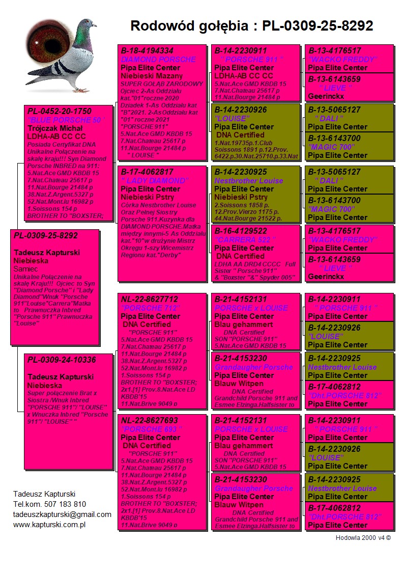 Oryginalny gołąb z hodowli Tadeusza Kapturskiego. Szczegóły pochodzenia w rodowodzie. Więcej informacji pod nr tel.: 507183810 *transport kurier 165 zł