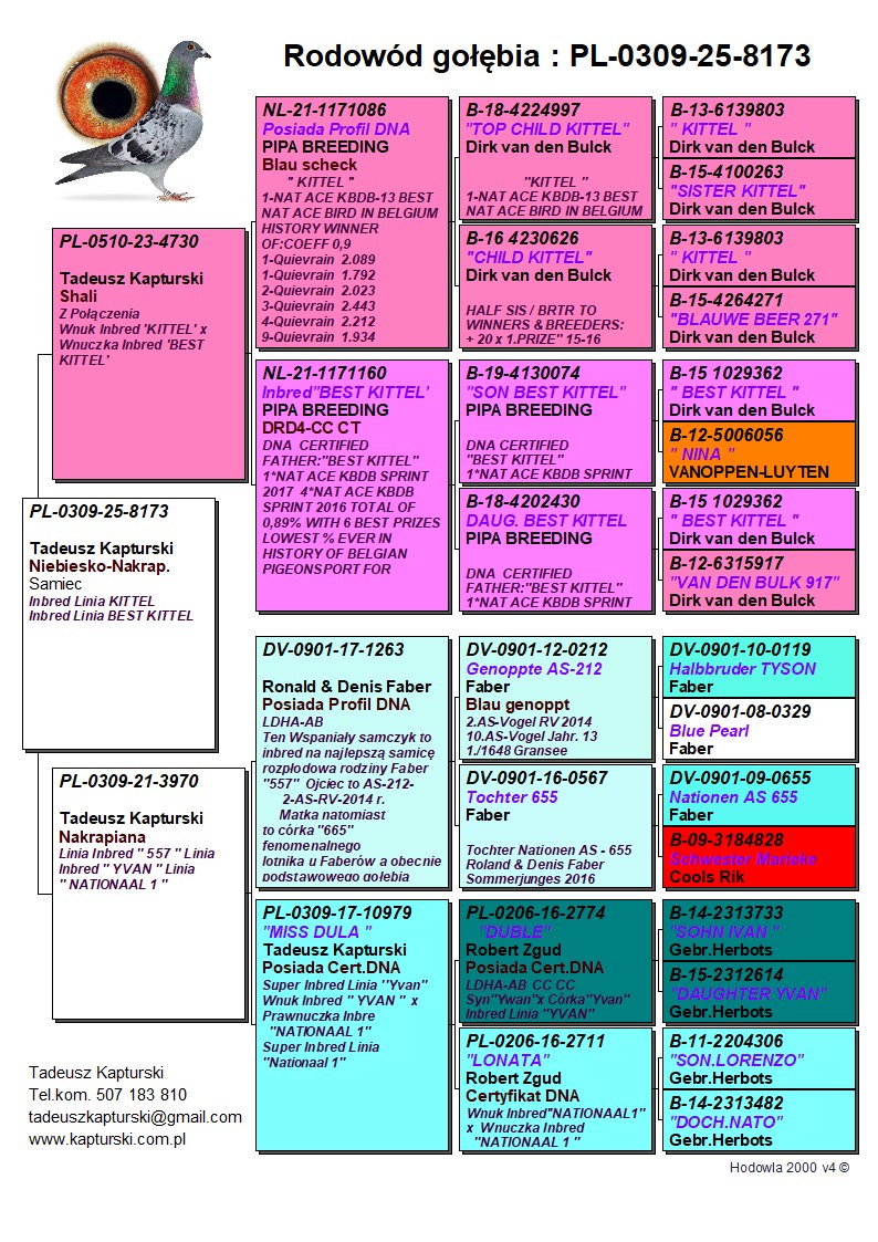 Oryginalny gołąb z hodowli Tadeusza Kapturskiego. Szczegóły pochodzenia w rodowodzie. Więcej informacji pod nr tel.: 507183810 *transport kurier 165 zł