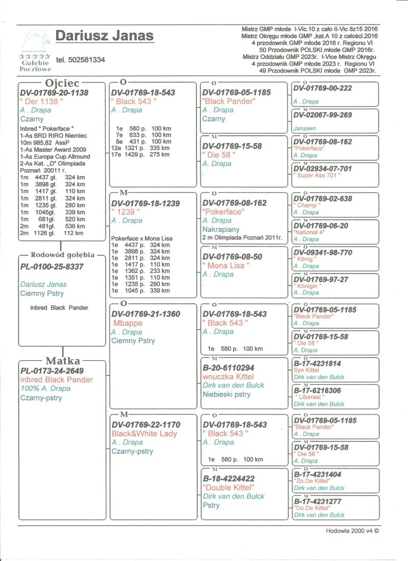 Oryginalny gołąb z hodowli Dariusz Janas . Szczegóły pochodzenia w rodowodzie . Więcej informacji pod nr. tel . 502581334 .... Wystawiany gołąb to prawdopodobnie samica......... koszt transportu do 3 szt. 120 zł. 150zł. w zależności od kuriera.