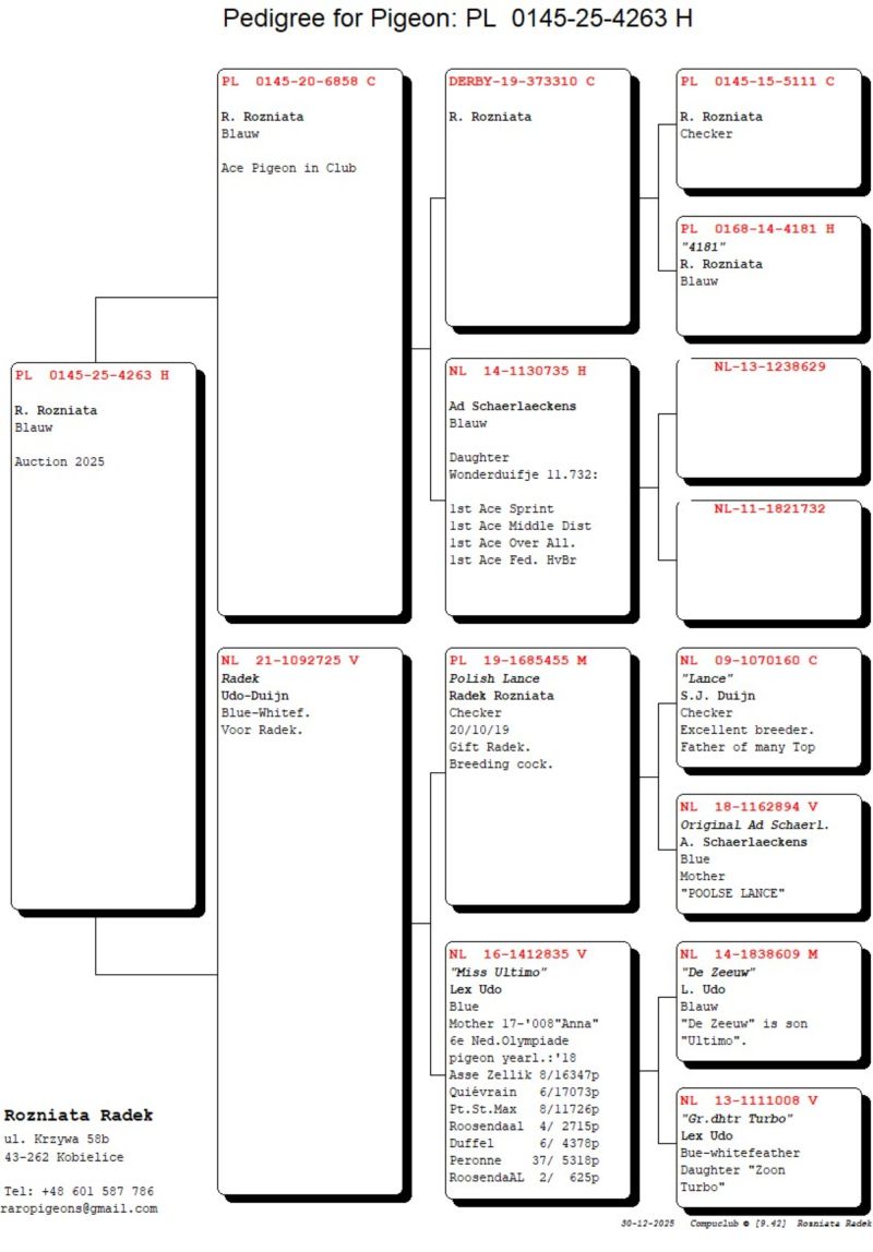 Płeć: samica Hodowca - rasa: oryg.Radosław Rozniata Zakończenie: 24.01.2026 godz. 18:36
