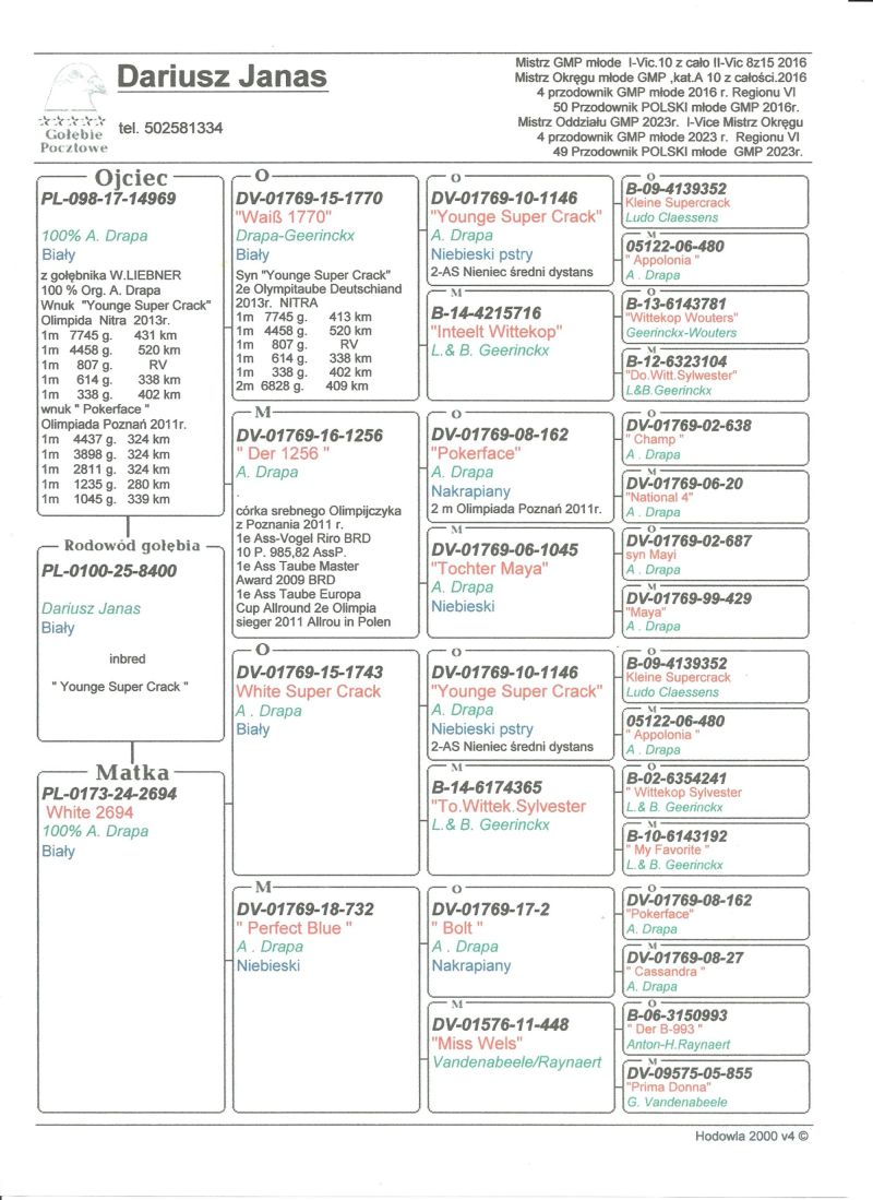 Oryginalny gołąb z hodowli Dariusz Janas . Szczegóły pochodzenia w rodowodzie . Więcej informacji pod nr. tel . 502581334 .... Wystawiany gołąb to prawdopodobnie samiec......... koszt transportu do 3 szt. 120 zł. 150zł. w zależności od kuriera.