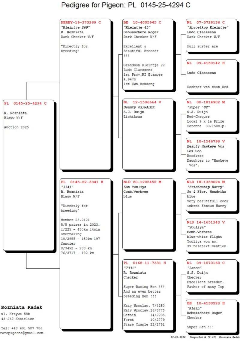 Szczegóły pochodzenia w rodowodzie.