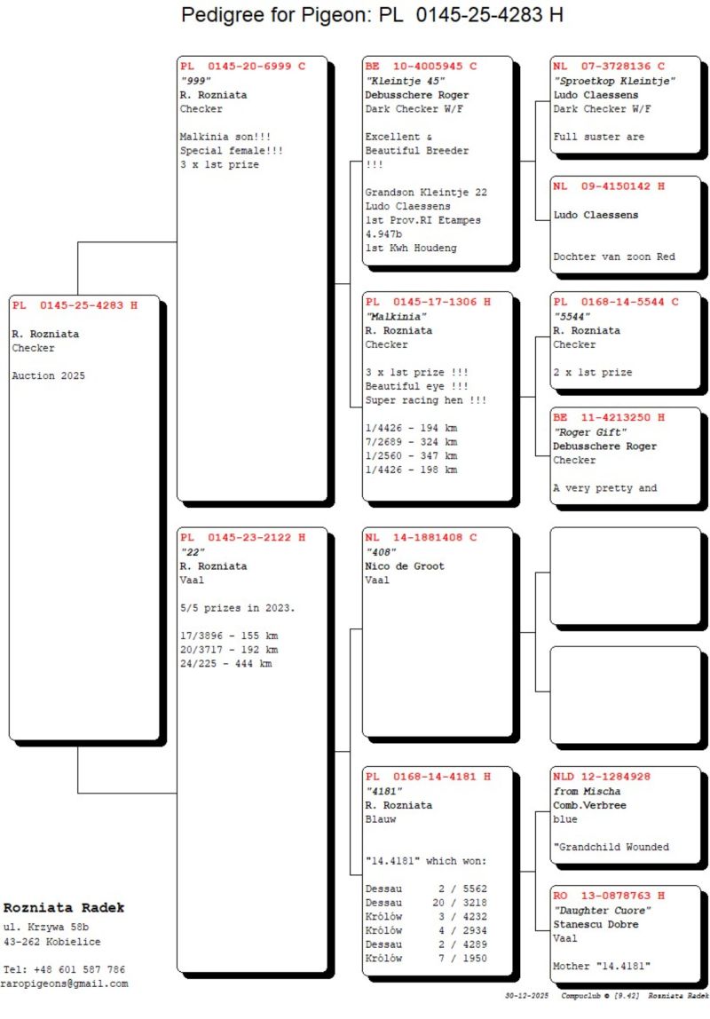 Szczegóły pochodzenia w rodowodzie.