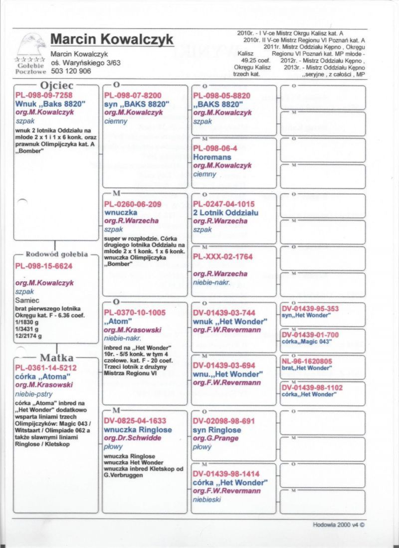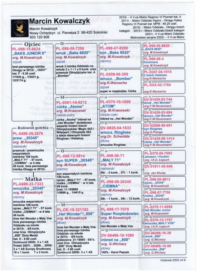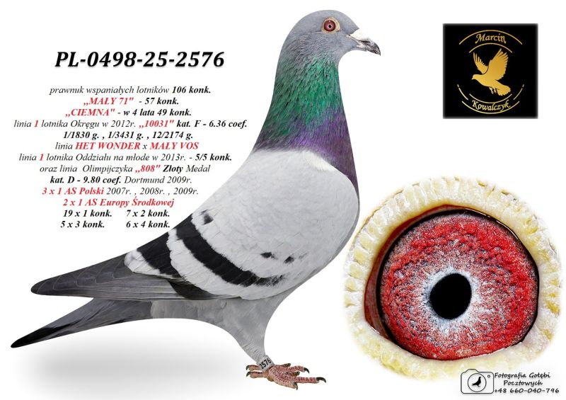Oryginalny gołąb z hodowli Marcin Kowalczyk.# Szczegóły pochodzenia w rodowodzie. # Gołąb zaszczepiony przeciw Paramyxowirozie, Herpeswirus, Adenowirus , Ospa. # Więcej informacji pod nr tel. 503 120 906 # Możliwy transport