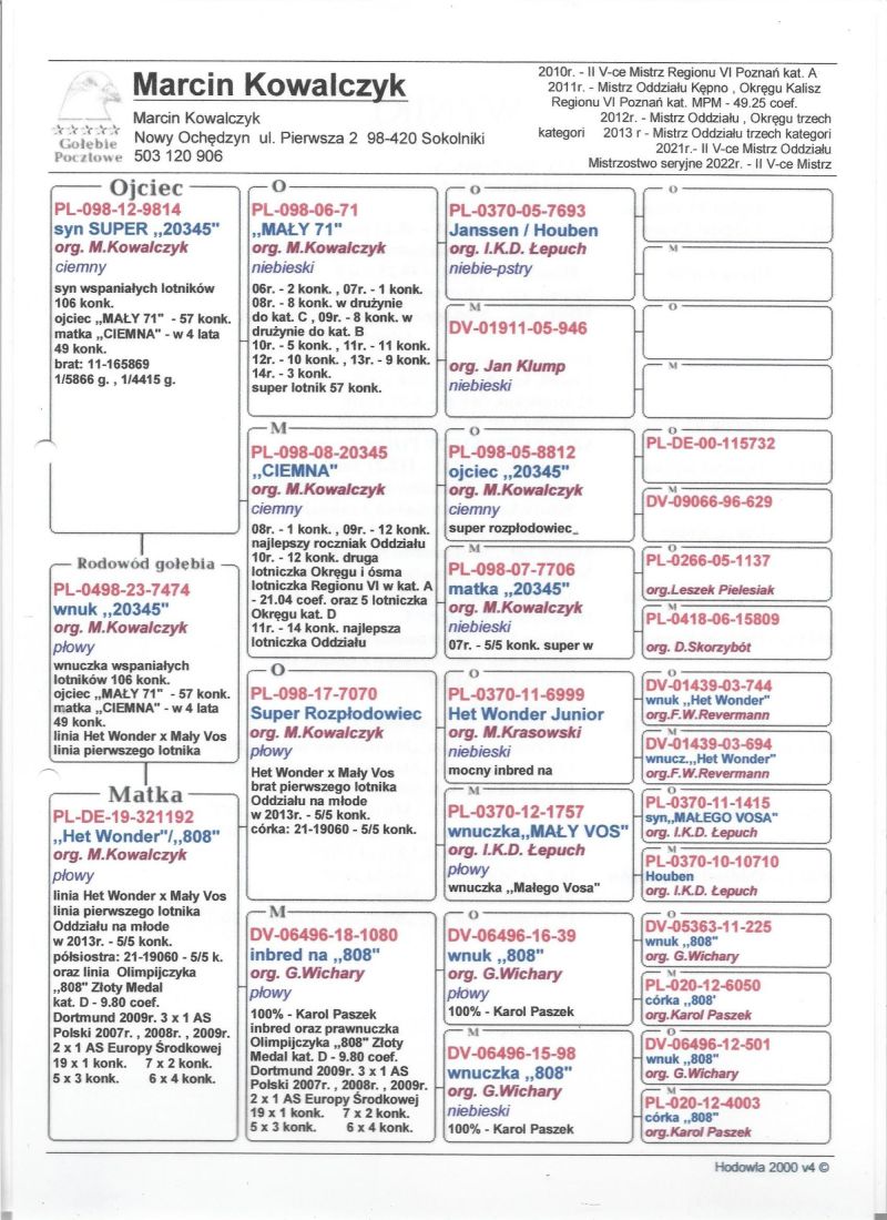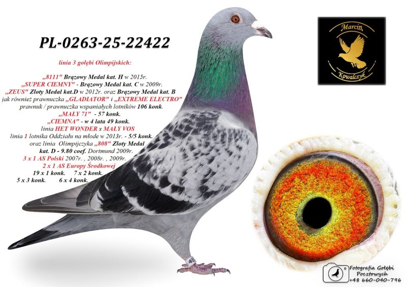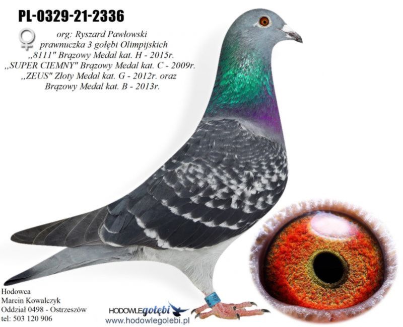 Oryginalny gołąb z hodowli Marcin Kowalczyk.# Szczegóły pochodzenia w rodowodzie. # Gołąb zaszczepiony przeciw Paramyxowirozie, Herpeswirus, Adenowirus , Ospa. # Więcej informacji pod nr tel. 503 120 906 # Możliwy transport