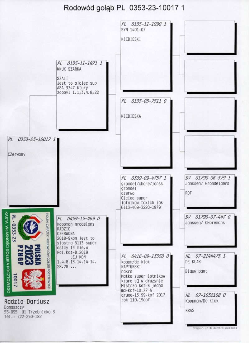PL-0353-23-10017 - oryg. Radzio Dariusz - Syn 469 - Pełna Siostra 6113 - 13 As Samica Polski kat. D
