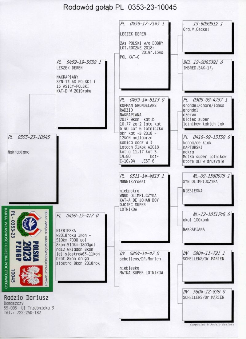PL-0353-23-10045 - oryg. Radzio Dariusz - Wnuk 6113 - 13 As Samica Polski kat. D