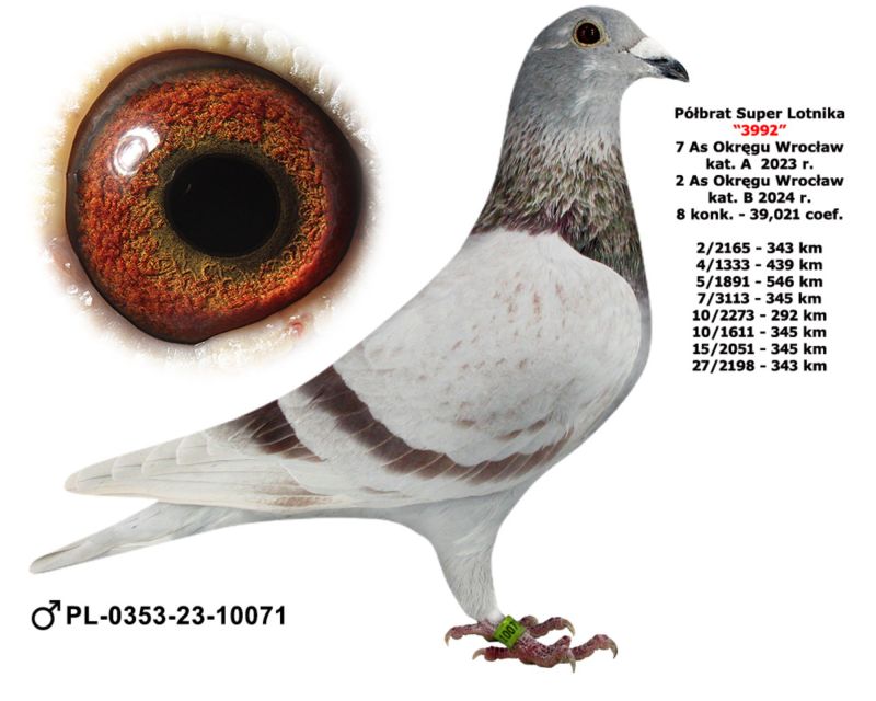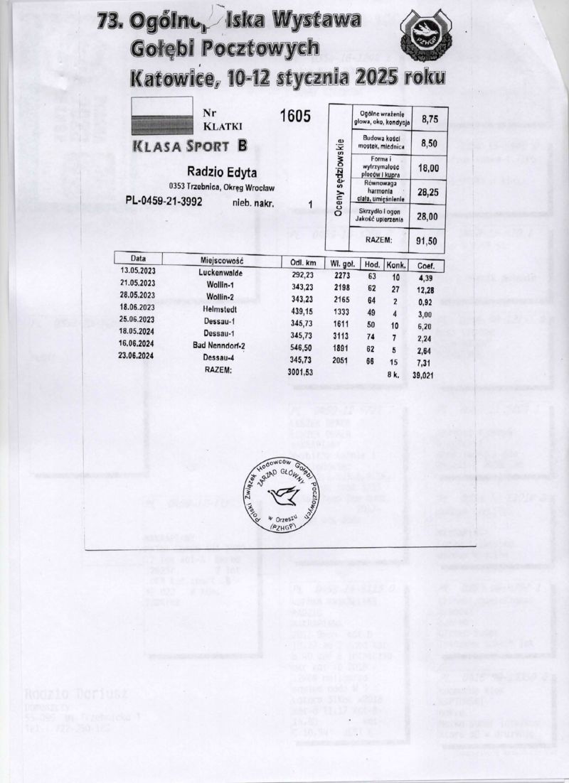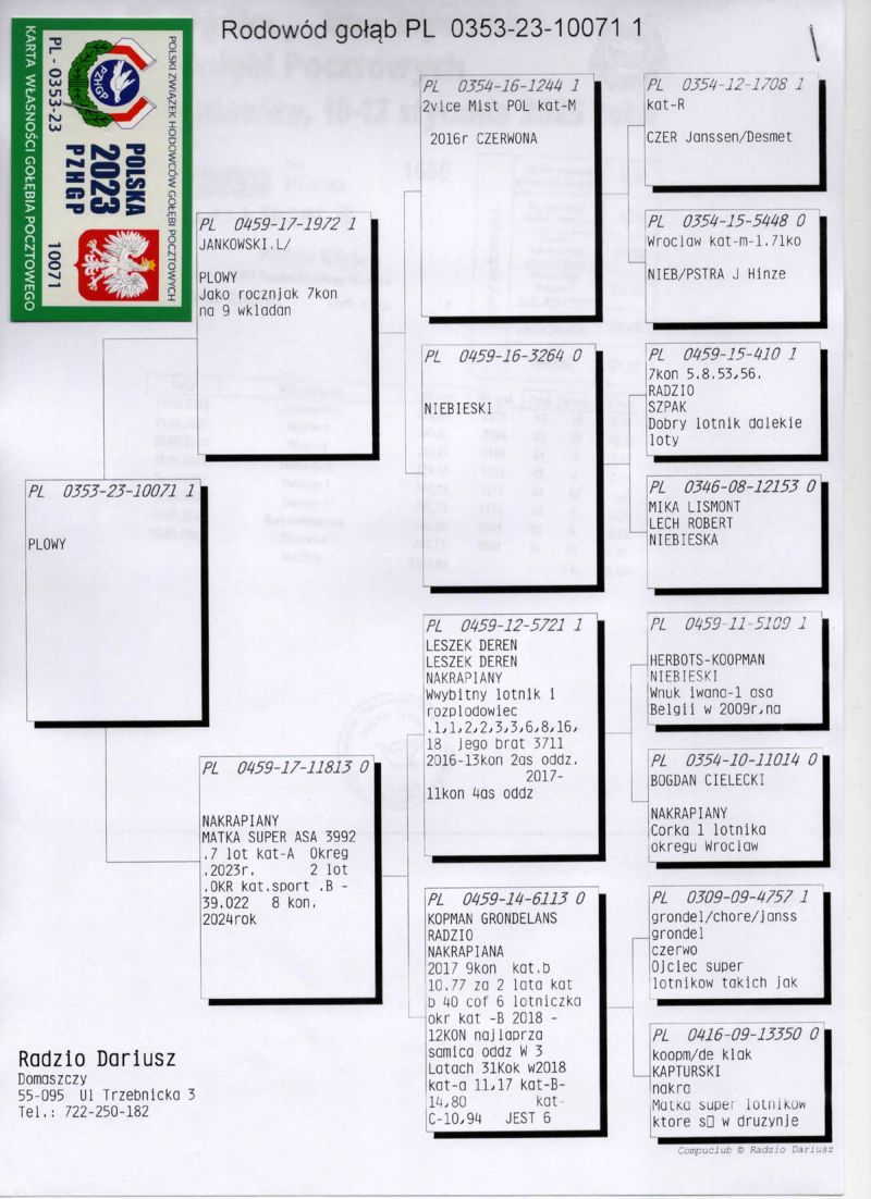 PL-0353-23-10071 - oryg. Radzio Dariusz - Półbrat 3992 kat. Sport B 39,022 coef - Wnuk 6113 - 13 As Samica Polski kat.D