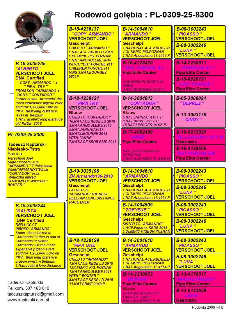 Oryginalny gołąb z hodowli Tadeusza Kapturskiego. Szczegóły pochodzenia w rodowodzie. Więcej informacji pod nr tel.: 507183810 *transport kurier 165 zł