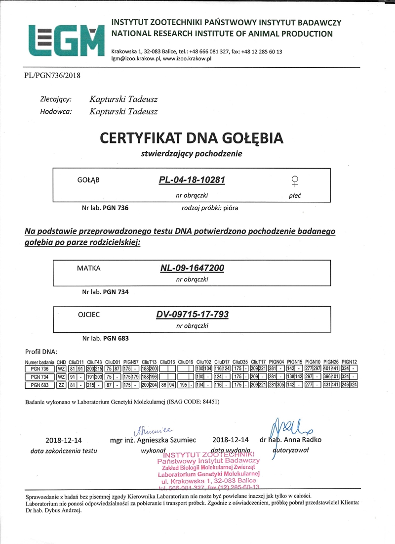 PL-0309-21-3989 - Inbred Linia PORSCHE Linia OLYMPIC TOE