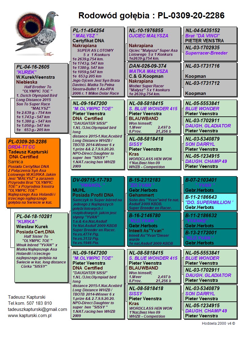 Oryginalny gołąb z hodowli Tadeusza Kapturskiego. Szczegóły pochodzenia w rodowodzie. Więcej informacji pod nr tel.: 507183810 *transport kurier 165 zł