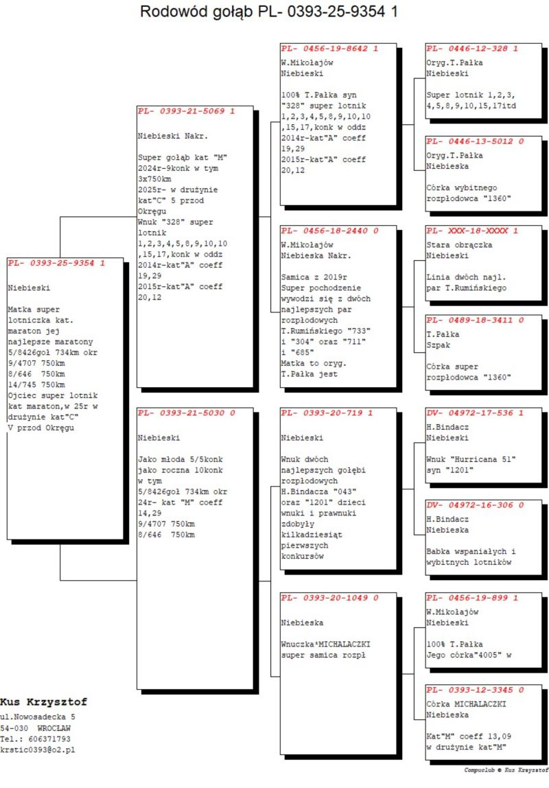 PL-0393-25-9354 oryg.KUŚ KRZYSZTOF rodzice super długie loty