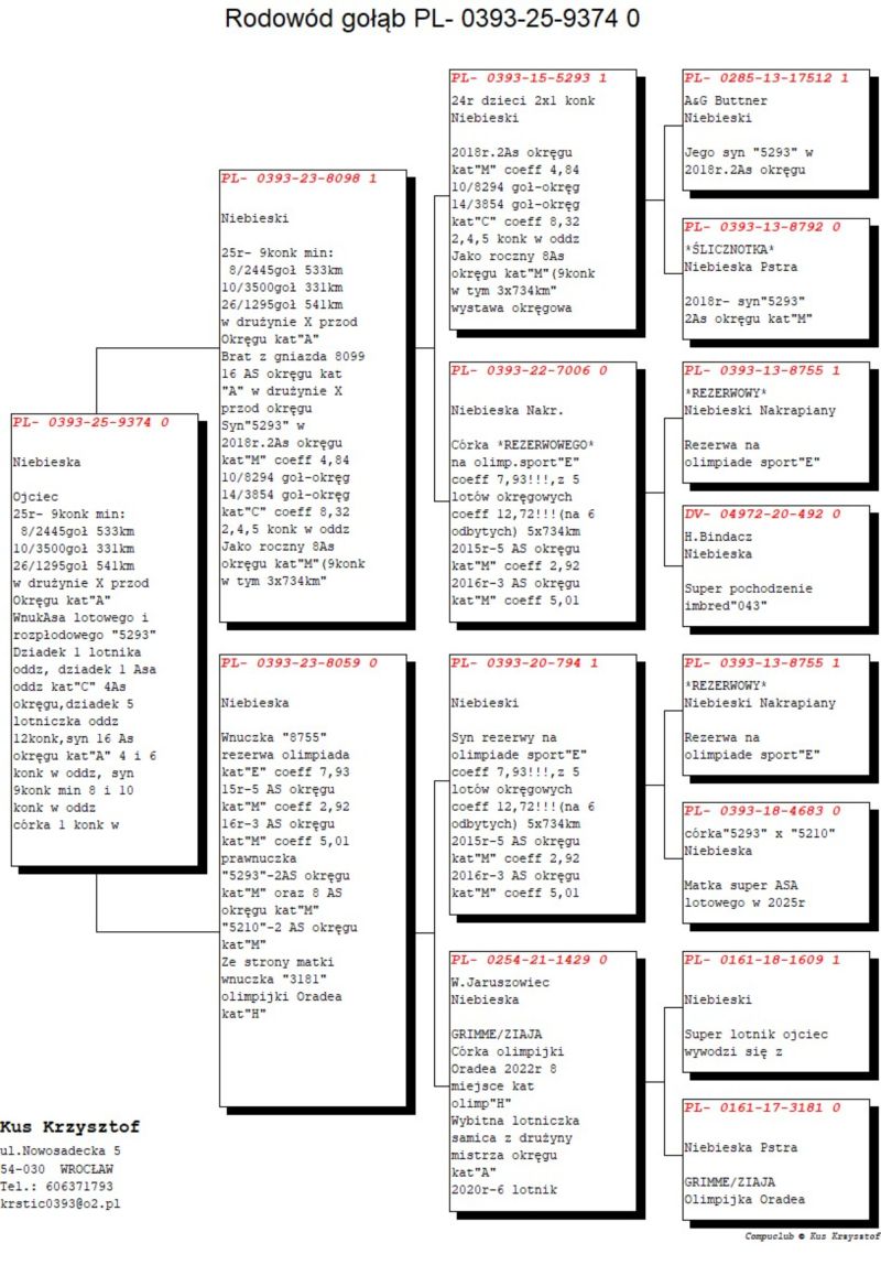 PL-0393-25-9374 oryg.KUŚ KRZYSZTOF wnuk "5293" super lotnik