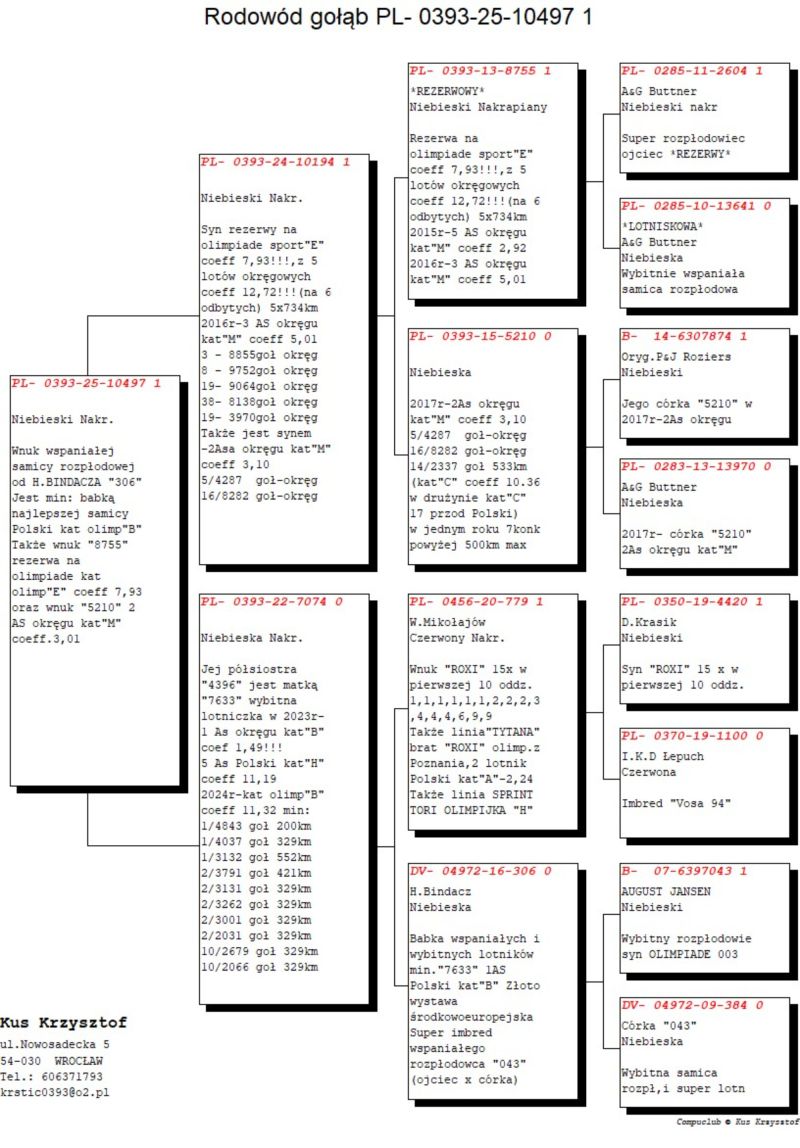 PL-0393-25-10497 oryg.KUŚ KRZYSZTOF wnuk "REZERWY" olimp "E" coeff 7,93 oraz wnuk"306"
