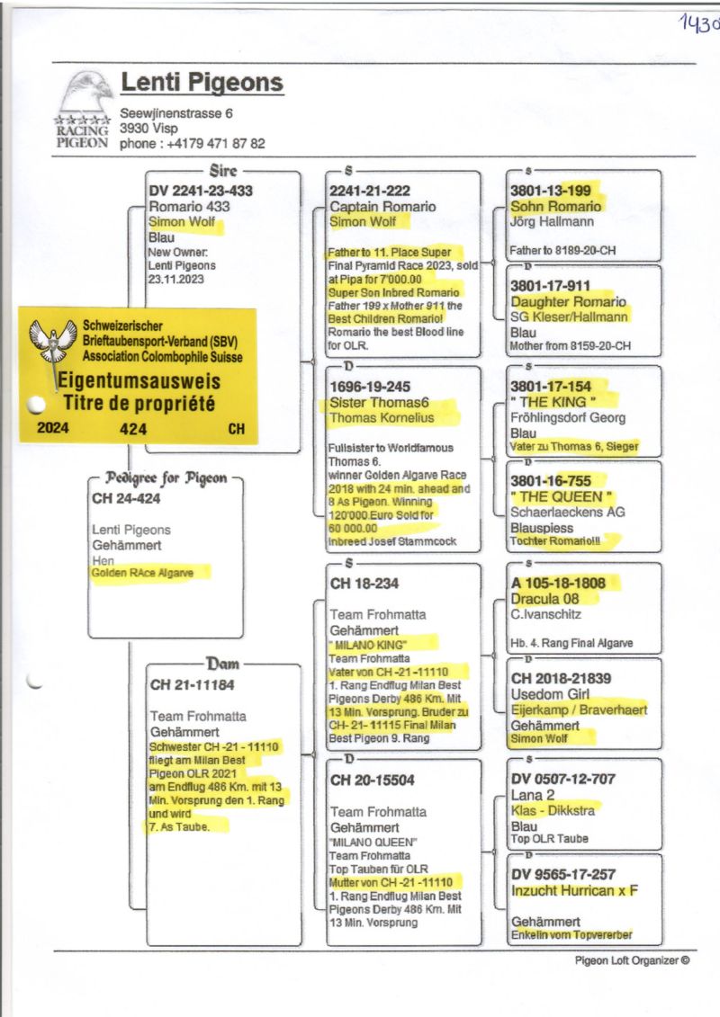 CH-24-424 oryg. Lenti Pigeons - Simon Wolf/Thomas Kornelius/Team Frohmatta - Adam Moskal .:KOTEK:.