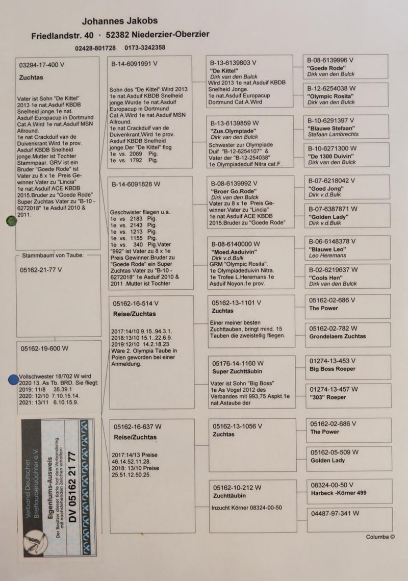 Oryginalny gołąb z hodowli - Johannes Jakobs. Więcej informacji pod numerem telefonu: +49 173 3549283