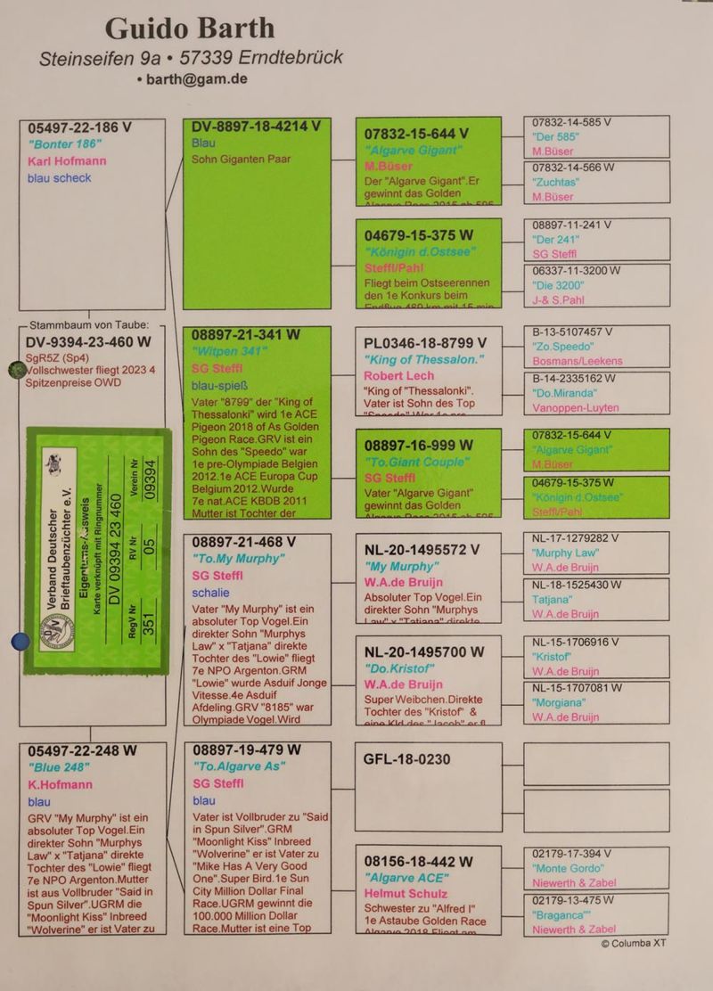 Oryginalny gołąb z hodowli - Guido Barth. Więcej informacji pod numerem telefonu: +49 173 3549283