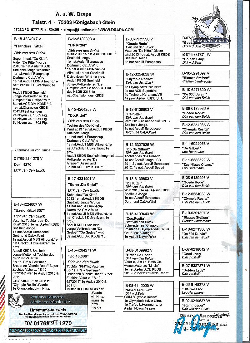 Oryginalny gołąb z hodowli Tadeusza Kapturskiego. Szczegóły pochodzenia w rodowodzie. Więcej informacji pod nr tel.: 507183810 *transport kurier 165 zł