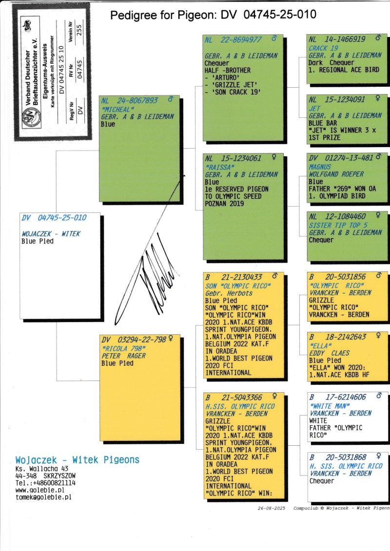 KOSZT TRANSPORTU 120 ZŁ (maksymalnie 3 gołębie w jednej paczce). KOSZTA ZA GOŁĘBIA I TRANSPORT KLIENCI BĘDĄ PŁACIĆ BEZPOŚREDNIO KIEROWCY KTÓRY PRZYWIEZIE GOŁĘBIE. Gołąb z hodowli WOJACZEK-WITEK. Szczegóły pochodzenia w rodowodzie. Kontakt w sprawie gołębi oraz transportu pod numerem telefonu +48 600 821 114