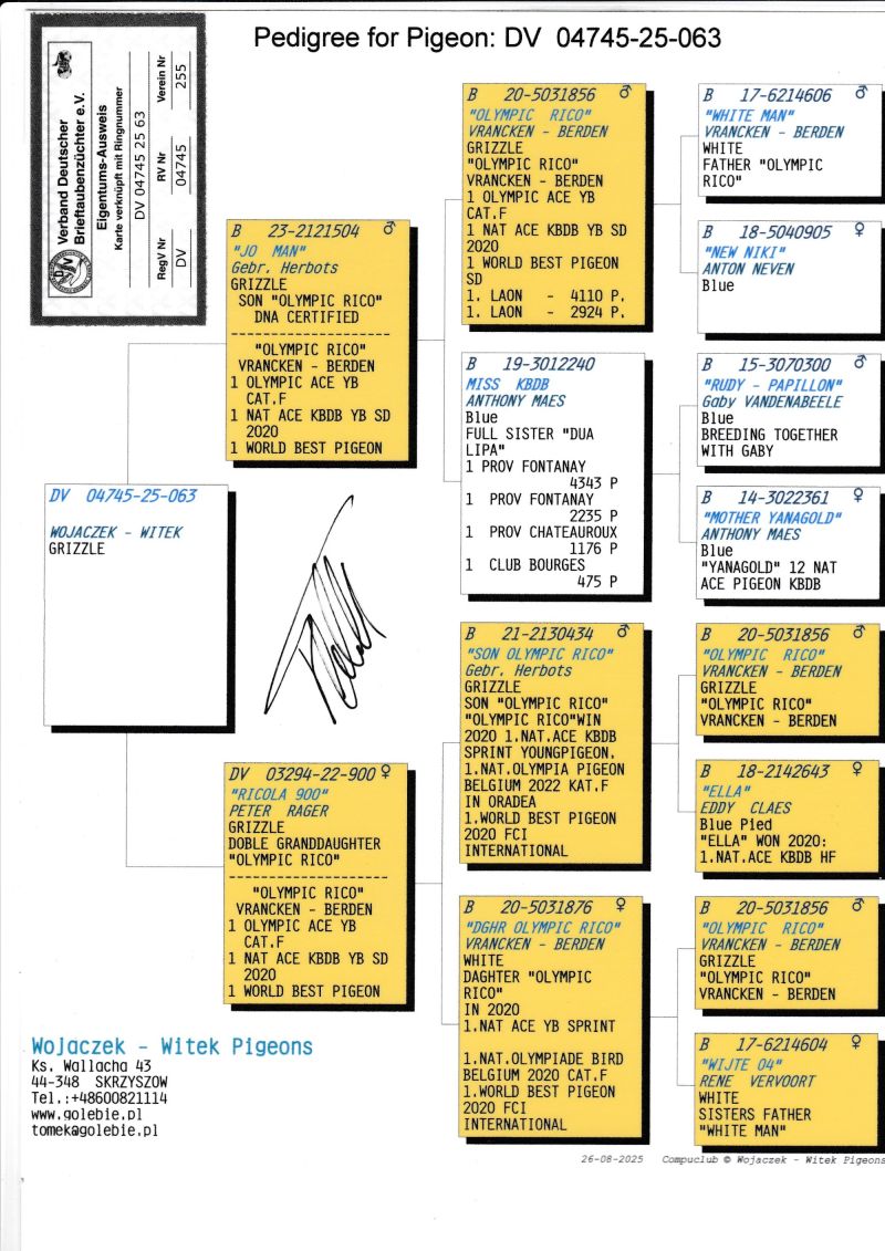 KOSZT TRANSPORTU 120 ZŁ (maksymalnie 3 gołębie w jednej paczce). KOSZTA ZA GOŁĘBIA I TRANSPORT KLIENCI BĘDĄ PŁACIĆ BEZPOŚREDNIO KIEROWCY KTÓRY PRZYWIEZIE GOŁĘBIE. Gołąb z hodowli WOJACZEK-WITEK. Szczegóły pochodzenia w rodowodzie. Kontakt w sprawie gołębi oraz transportu pod numerem telefonu +48 600 821 114