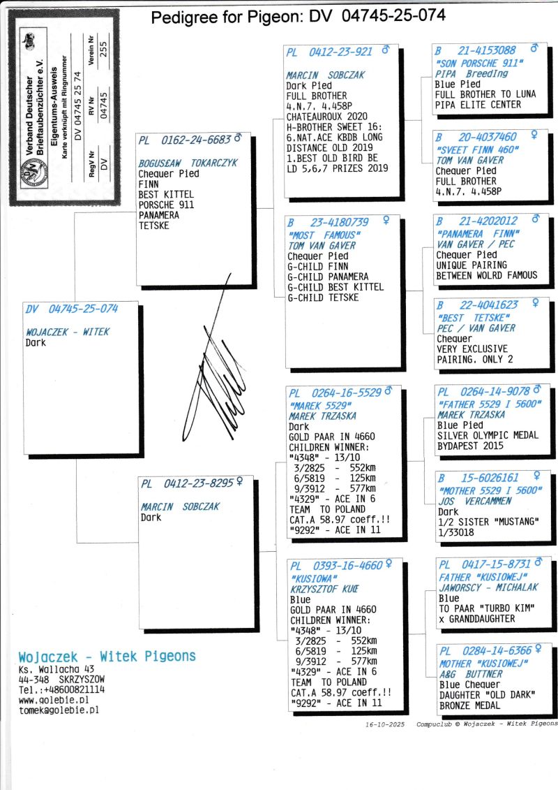KOSZT TRANSPORTU 120 ZŁ (maksymalnie 3 gołębie w jednej paczce). KOSZTA ZA GOŁĘBIA I TRANSPORT KLIENCI BĘDĄ PŁACIĆ BEZPOŚREDNIO KIEROWCY KTÓRY PRZYWIEZIE GOŁĘBIE. Gołąb z hodowli WOJACZEK-WITEK. Szczegóły pochodzenia w rodowodzie. Kontakt w sprawie gołębi oraz transportu pod numerem telefonu +48 600 821 114