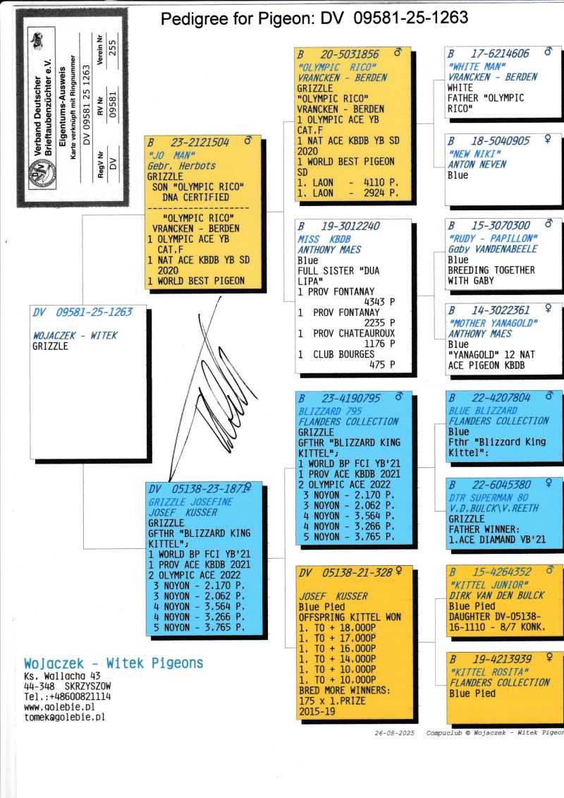 KOSZT TRANSPORTU 120 ZŁ (maksymalnie 3 gołębie w jednej paczce). KOSZTA ZA GOŁĘBIA I TRANSPORT KLIENCI BĘDĄ PŁACIĆ BEZPOŚREDNIO KIEROWCY KTÓRY PRZYWIEZIE GOŁĘBIE. Gołąb z hodowli WOJACZEK-WITEK. Szczegóły pochodzenia w rodowodzie. Kontakt w sprawie gołębi oraz transportu pod numerem telefonu +48 600 821 114