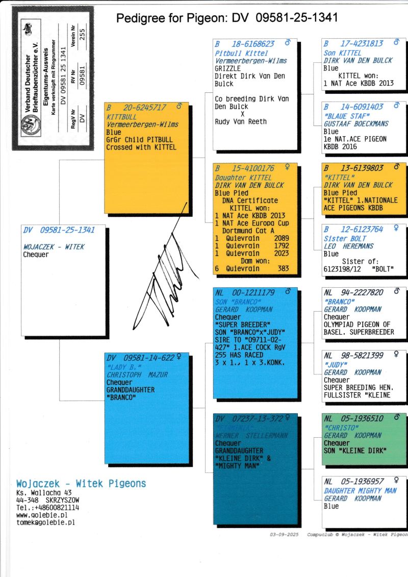 KOSZT TRANSPORTU 120 ZŁ (maksymalnie 3 gołębie w jednej paczce). KOSZTA ZA GOŁĘBIA I TRANSPORT KLIENCI BĘDĄ PŁACIĆ BEZPOŚREDNIO KIEROWCY KTÓRY PRZYWIEZIE GOŁĘBIE. Gołąb z hodowli WOJACZEK-WITEK. Szczegóły pochodzenia w rodowodzie. Kontakt w sprawie gołębi oraz transportu pod numerem telefonu +48 600 821 114