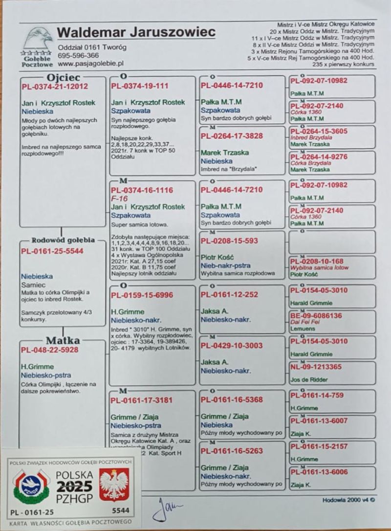 PL-0161-25-5544 inbred Rostek x wnuk Olimpijki