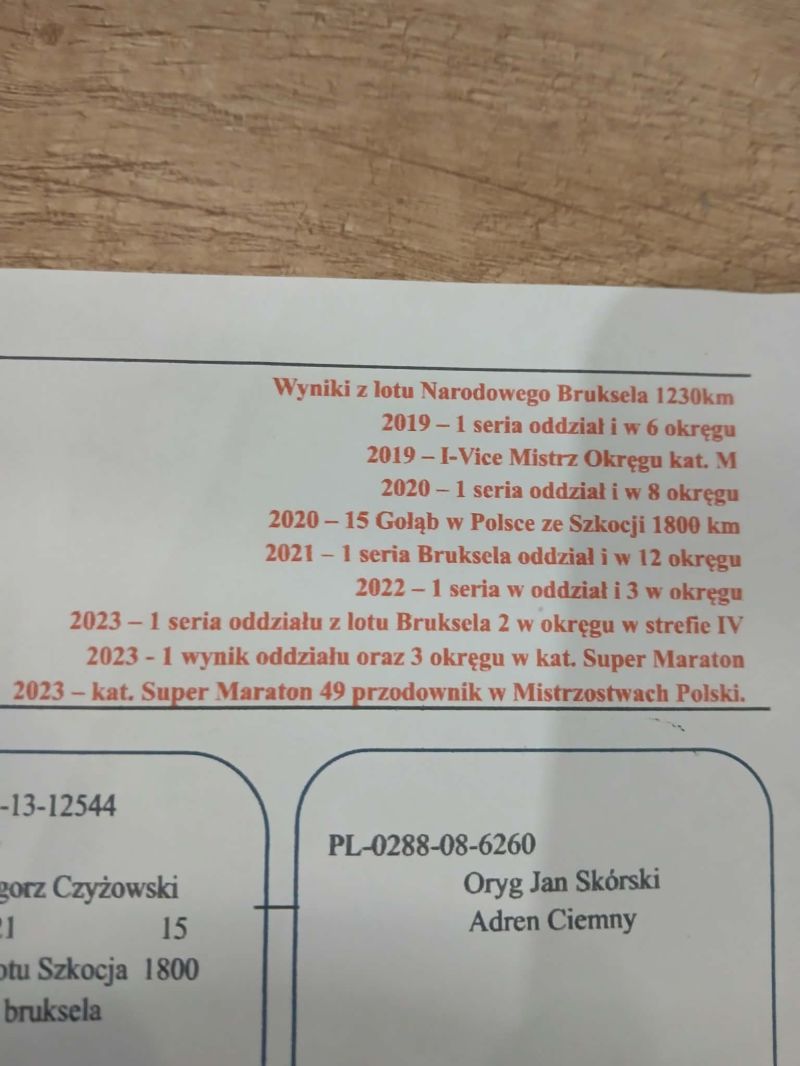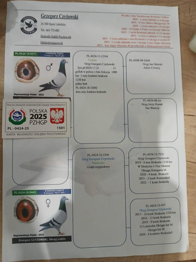 PL-0424-25-1501 oryg Grzegorz Czyżowski / linia gołębi dalekodystansowych