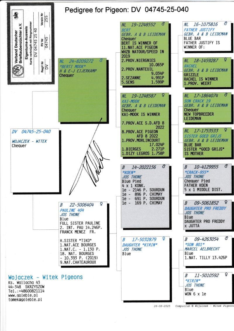 KOSZT TRANSPORTU 120 ZŁ (maksymalnie 3 gołębie w jednej paczce). KOSZTA ZA GOŁĘBIA I TRANSPORT KLIENCI BĘDĄ PŁACIĆ BEZPOŚREDNIO KIEROWCY KTÓRY PRZYWIEZIE GOŁĘBIE. Gołąb z hodowli WOJACZEK-WITEK. Szczegóły pochodzenia w rodowodzie. Kontakt w sprawie gołębi oraz transportu pod numerem telefonu +48 600 821 114