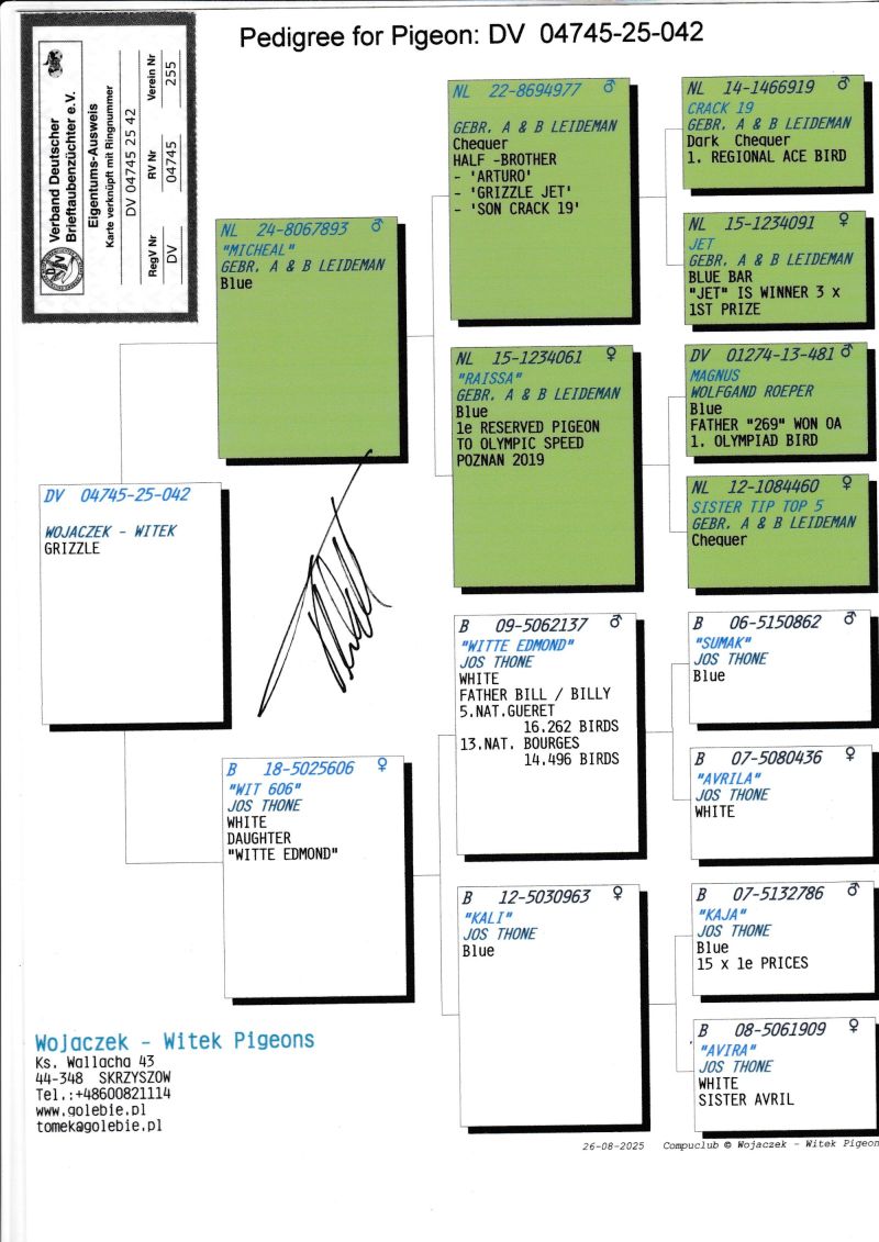 KOSZT TRANSPORTU 120 ZŁ (maksymalnie 3 gołębie w jednej paczce). KOSZTA ZA GOŁĘBIA I TRANSPORT KLIENCI BĘDĄ PŁACIĆ BEZPOŚREDNIO KIEROWCY KTÓRY PRZYWIEZIE GOŁĘBIE. Gołąb z hodowli WOJACZEK-WITEK. Szczegóły pochodzenia w rodowodzie. Kontakt w sprawie gołębi oraz transportu pod numerem telefonu +48 600 821 114