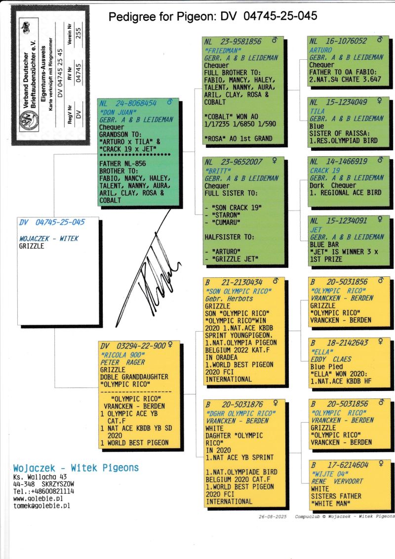KOSZT TRANSPORTU 120 ZŁ (maksymalnie 3 gołębie w jednej paczce). KOSZTA ZA GOŁĘBIA I TRANSPORT KLIENCI BĘDĄ PŁACIĆ BEZPOŚREDNIO KIEROWCY KTÓRY PRZYWIEZIE GOŁĘBIE. Gołąb z hodowli WOJACZEK-WITEK. Szczegóły pochodzenia w rodowodzie. Kontakt w sprawie gołębi oraz transportu pod numerem telefonu +48 600 821 114