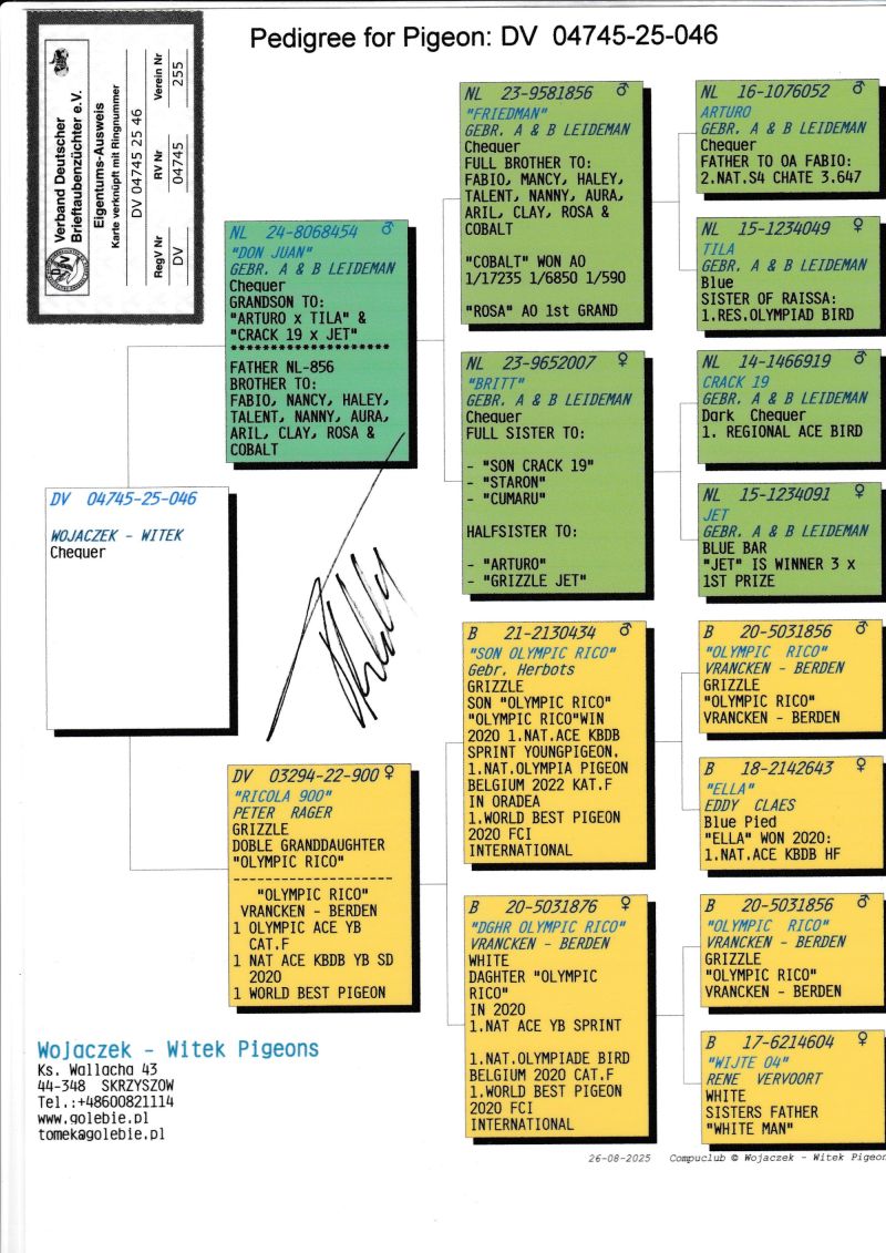 KOSZT TRANSPORTU 120 ZŁ (maksymalnie 3 gołębie w jednej paczce). KOSZTA ZA GOŁĘBIA I TRANSPORT KLIENCI BĘDĄ PŁACIĆ BEZPOŚREDNIO KIEROWCY KTÓRY PRZYWIEZIE GOŁĘBIE. Gołąb z hodowli WOJACZEK-WITEK. Szczegóły pochodzenia w rodowodzie. Kontakt w sprawie gołębi oraz transportu pod numerem telefonu +48 600 821 114