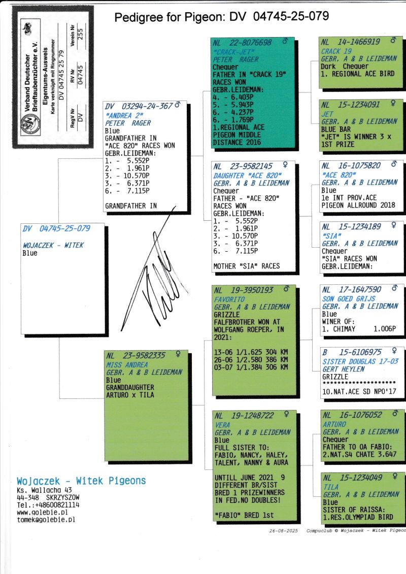 KOSZT TRANSPORTU 120 ZŁ (maksymalnie 3 gołębie w jednej paczce). KOSZTA ZA GOŁĘBIA I TRANSPORT KLIENCI BĘDĄ PŁACIĆ BEZPOŚREDNIO KIEROWCY KTÓRY PRZYWIEZIE GOŁĘBIE. Gołąb z hodowli WOJACZEK-WITEK. Szczegóły pochodzenia w rodowodzie. Kontakt w sprawie gołębi oraz transportu pod numerem telefonu +48 600 821 114