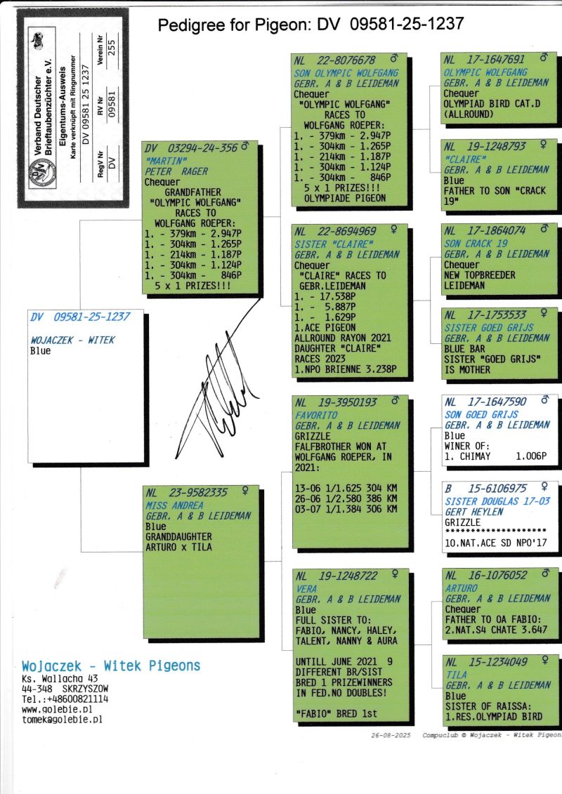 KOSZT TRANSPORTU 120 ZŁ (maksymalnie 3 gołębie w jednej paczce). KOSZTA ZA GOŁĘBIA I TRANSPORT KLIENCI BĘDĄ PŁACIĆ BEZPOŚREDNIO KIEROWCY KTÓRY PRZYWIEZIE GOŁĘBIE. Gołąb z hodowli WOJACZEK-WITEK. Szczegóły pochodzenia w rodowodzie. Kontakt w sprawie gołębi oraz transportu pod numerem telefonu +48 600 821 114