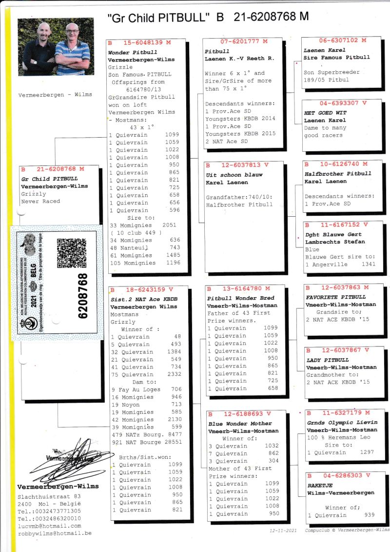 KOSZT TRANSPORTU 120 ZŁ (maksymalnie 3 gołębie w jednej paczce). KOSZTA ZA GOŁĘBIA I TRANSPORT KLIENCI BĘDĄ PŁACIĆ BEZPOŚREDNIO KIEROWCY KTÓRY PRZYWIEZIE GOŁĘBIE. Gołąb z hodowli Vermeerbergen-Wilms. Szczegóły pochodzenia w rodowodzie. Kontakt w sprawie gołębi oraz transportu pod numerem telefonu +48 600 821 114