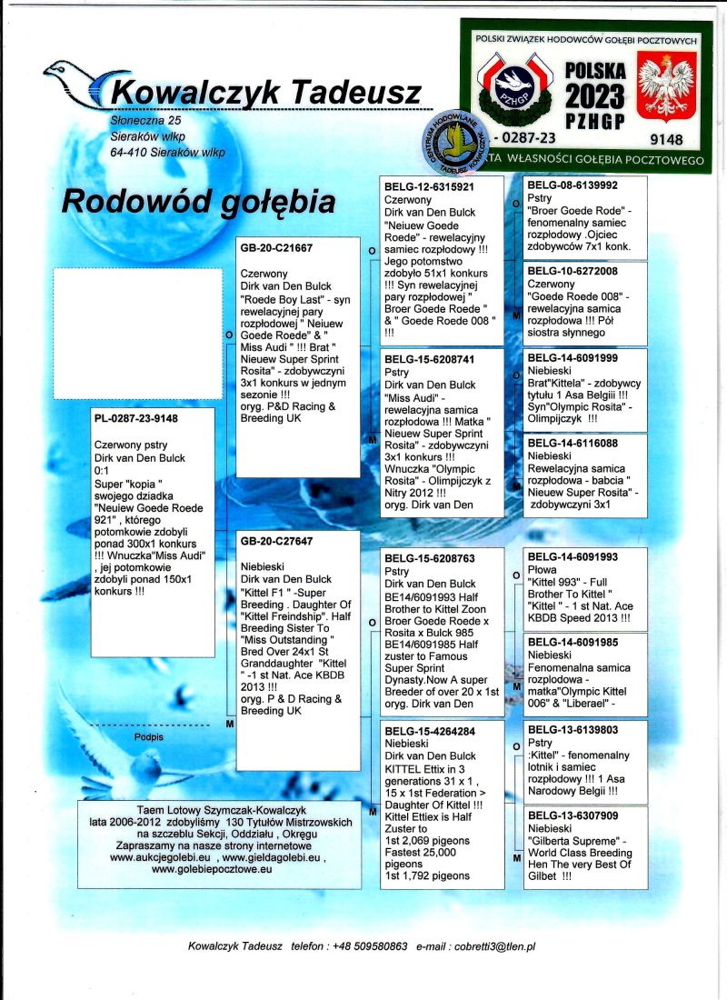PL-0287-23-9148 Mega połączenie najlepszych gołębi Dirka van Den Bulcka