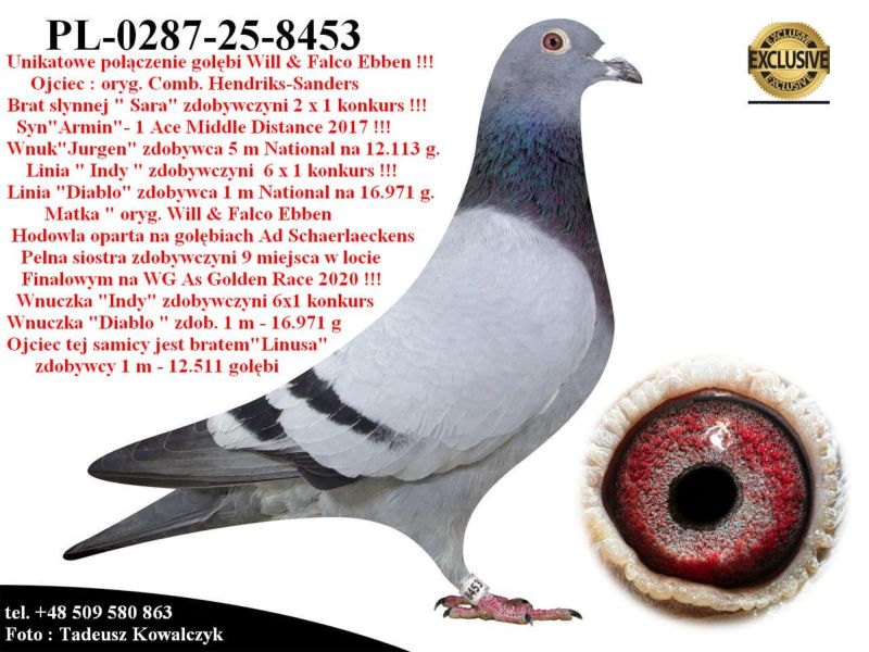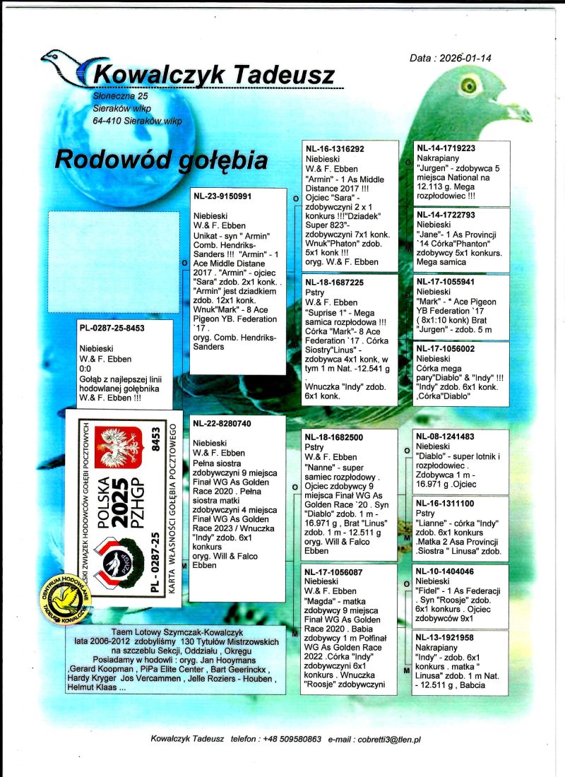 PL-0287-25-8453 Połaczenie najlepszych gołębi z hodowli Will & Falco Ebben