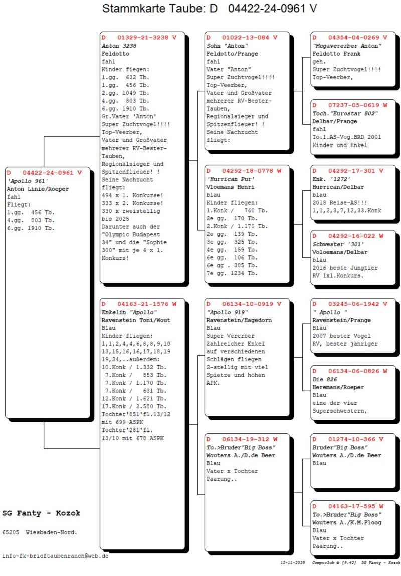 Wybitna niemiecka hodowla, która od wielu lat osiąga liczne sukcesy lotowe