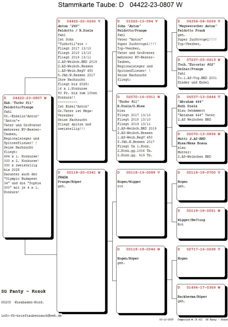 Wybitna niemiecka hodowla, która od wielu lat osiąga liczne sukcesy lotowe