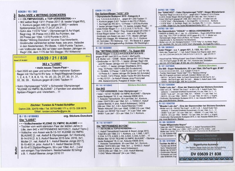 Wybitna niemiecka hodowla, która od wielu lat osiąga liczne sukcesy lotowe