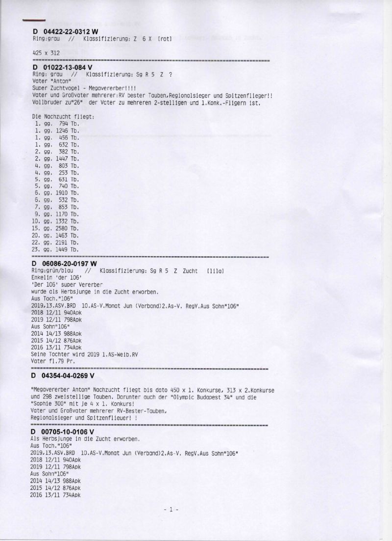 Wybitna niemiecka hodowla, która od wielu lat osiąga liczne sukcesy lotowe