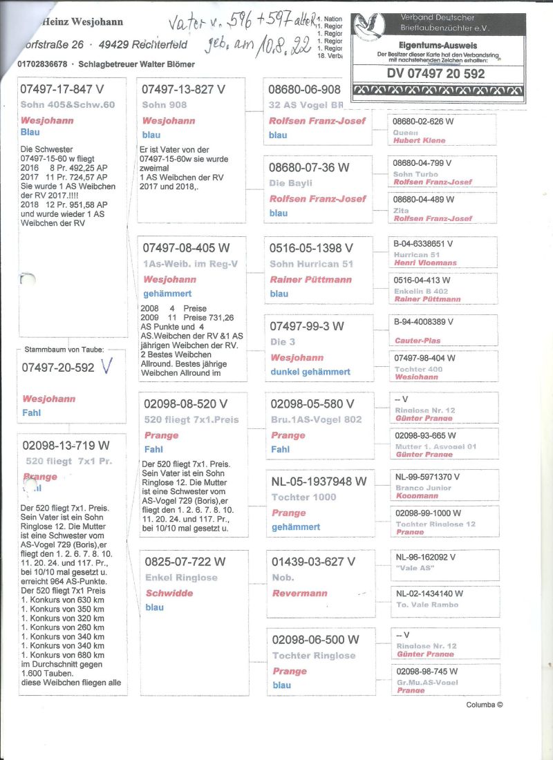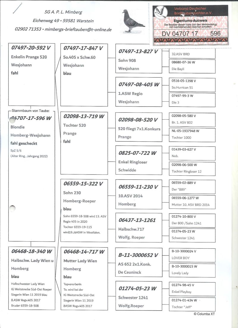 Oryginalny gołąb z hodowli SG A.P.L.Mimberg,gołąb z roku 2022,szczegóły pochodzenia w rodowodzie,więcej informacji pod nr tel,:603 312 976,transport gołębi po wpłacie pieniążków na konto ,gołębie będą dostarczane kurierem 1-5szt 180zł