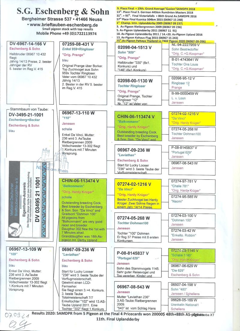 Oryginalny gołąb z hodowli S.G.Eschenberg & Sohn,szczegóły pochodzenia w rodowodzie,więcej informacji pod nr tel,:603 312 976,transport gołębi po wpłacie pieniążków na konto ,gołębie będą dostarczane kurierem 1-5szt 180zł