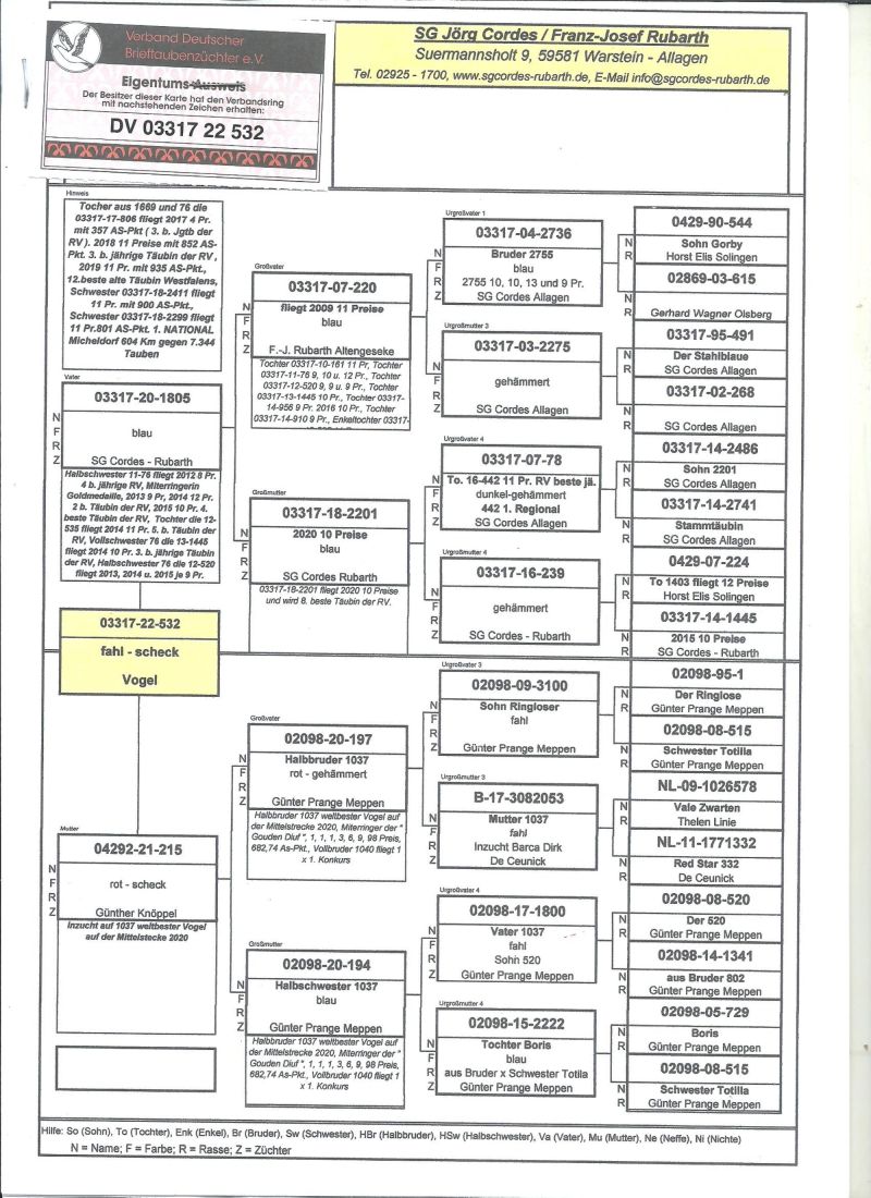 Oryginalny gołąb z hodowli SG.Jörg Cordes / Franz-Josef Rubarth,szczegóły pochodzenia w rodowodzie,więcej informacji pod nr tel,:603 312 976,transport gołębi po wpłacie pieniążków na konto ,gołębie będą dostarczane kurierem 1-5szt 180zł